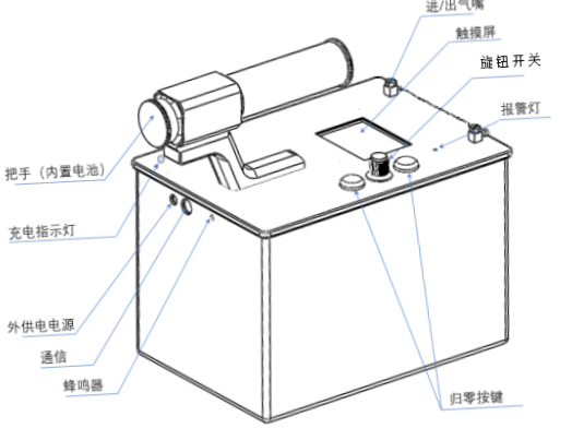 适用于含氚气氛氚浓度监测,轻巧结实,便于携带,可对管道、狭小区域涉氚区域进行巡测和专检。